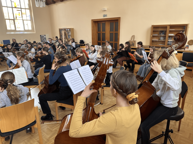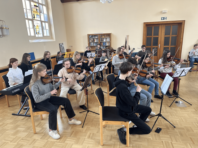 Das Mixtura-Orchester probt montags unter Leitung von Herrn Szostakowski um 16:45 Uhr in R. 204 in der Musikschule Löbau.
